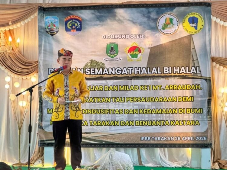 TARAKAN, Fokusborneo.com – Gubernur Kalimantan Utara (Kaltara) dalam hal ini diwakili Asisten Bidang Perekonomian dan Pembangunan Dr. Bustan, SE., M.Si., menghadiri kegiatan Halalbihalal dan Milad ke-1 Majelis Taklim Arraudah Ikatan Pemuda Bubuhan Banjar (IPBB) Kota Tarakan yang digelar di Gedung Moderasi FKUB, Minggu (26/4).