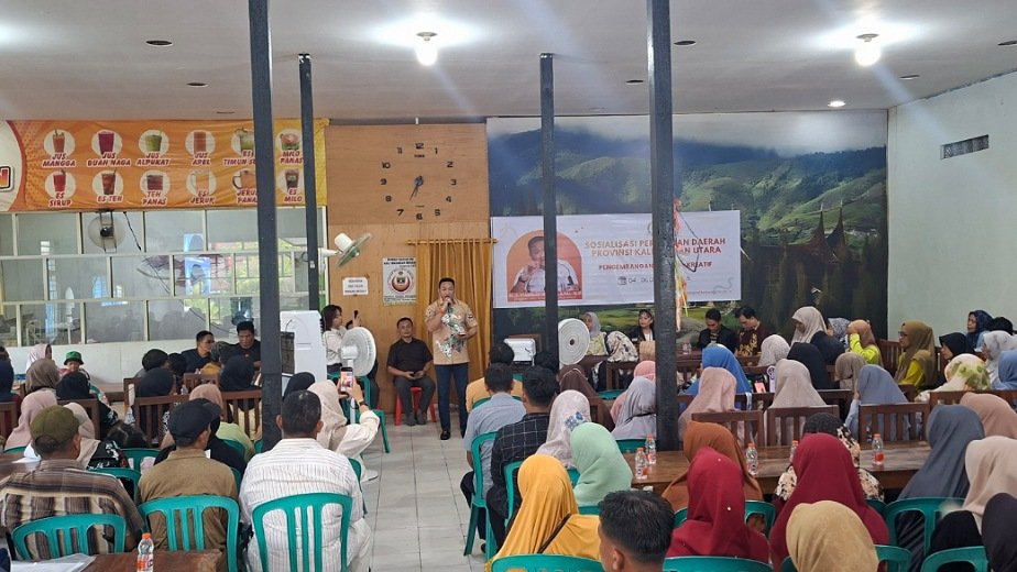 Sosialisasi Perda yang baru disahkan bersama Raperda APBD Kaltara 2026 ini, dilaksanakan di Rumah Makan Padang Mak Entek, Sabtu (6/12/25).