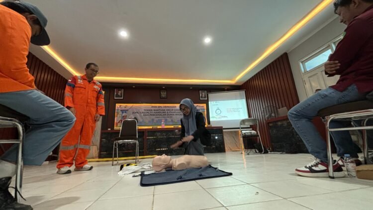 Para pekerja PHM ini memberikan pembekalan teknis dan praktik langsung mengenai penanganan korban gawat darurat dan evakuasi yang aman, termasuk simulasi CPR yang menjadi bagian penting dari kesiapsiagaan masyarakat dalam menghadapi kondisi darurat.