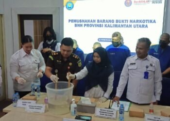 “Untuk total yang dimusnahkan sebanyak 246,75 gram, kemudian disisihkan 3 gram karena ada 6 bungkus untuk persidangan,” jelas Wakapolres Tarakan, Kompol Andreas didampingi Kasatreskoba IPDA Dien Fahrur Romadhoni.
