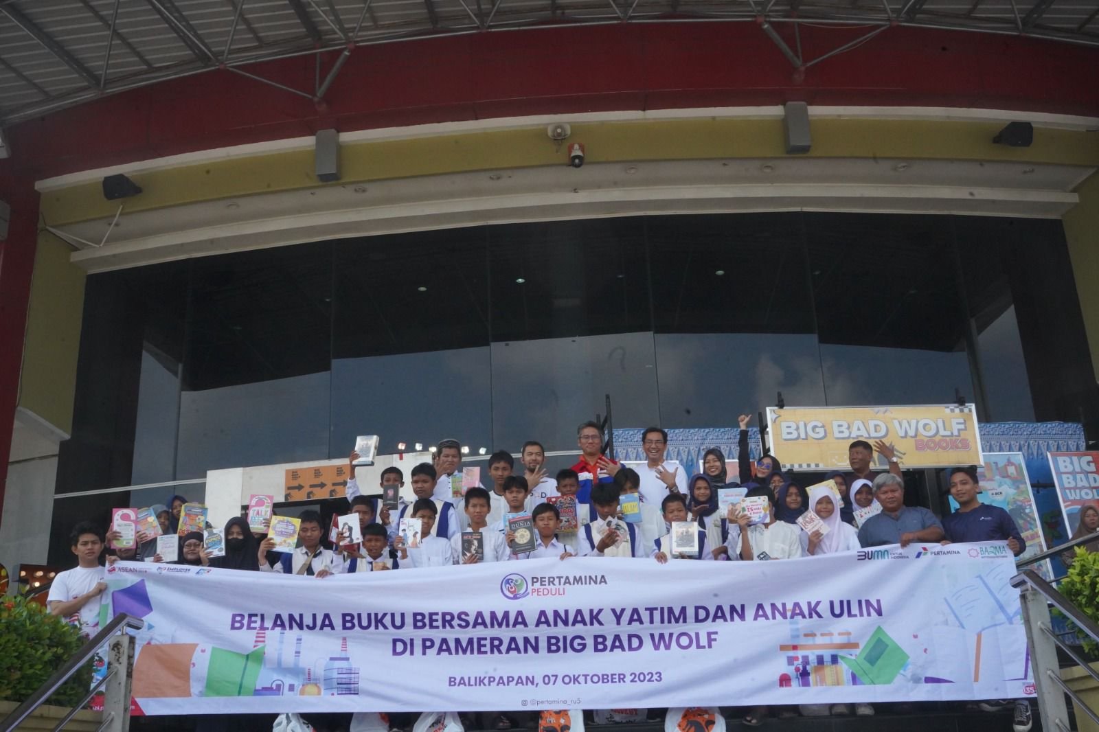 BALIKPAPAN – Ratusan anak-anak tiba-tiba membanjiri pameran buku Big Bad Wolf yang sedang berlangsung di Kota Balikpapan. Pameran yang harusnya buka pada pukul 10.00 WITA itu buka lebih cepat karena adanya kegiatan Belanja Buku Bersama Anak Yatim dan Anak Ulin yang diselenggarakan oleh Pertamina melalui PT Kilang Pertamina Internasional (KPI) Unit Balikpapan, Sabtu (07/10).