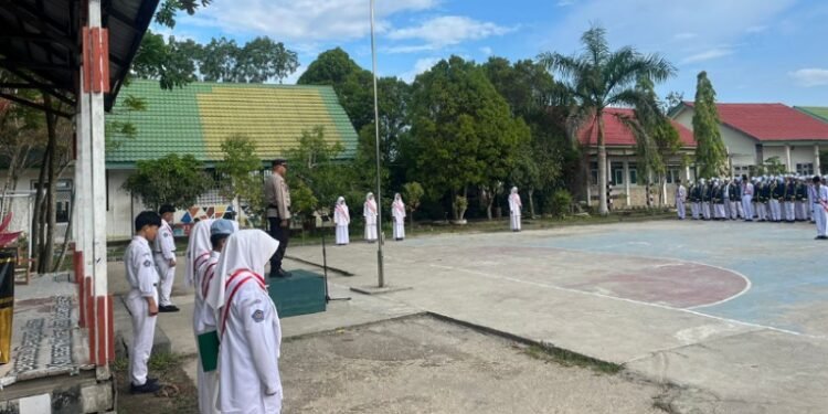 Bulungan – Kanit Bhabinkamtibmas Polresta Bulungan menjadi inspektur upacara bendera merah putih di Madrasah Aliyah Negeri (MAN) Kabupaten Bulungan, Senin (13/10/2025).