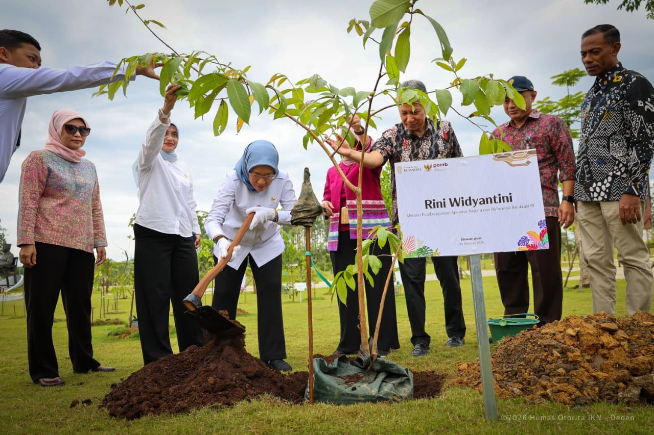 NUSANTARA, Fokusborneo.com — Tinggalkan jejak hijau di Nusantara, Menteri Pendayagunaan Negara dan Reformasi Birokrasi (MenPANRB), Rini Widyantini, bersama-sama dengan seluruh Insan Otorita Ibu Kota Nusantara (OIKN) melaksanakan penanaman ratusan pohon di Kawasan Inti Pusat Pemerintahan (KIPP) Nusantara, pada Jumat (13/2/2026).