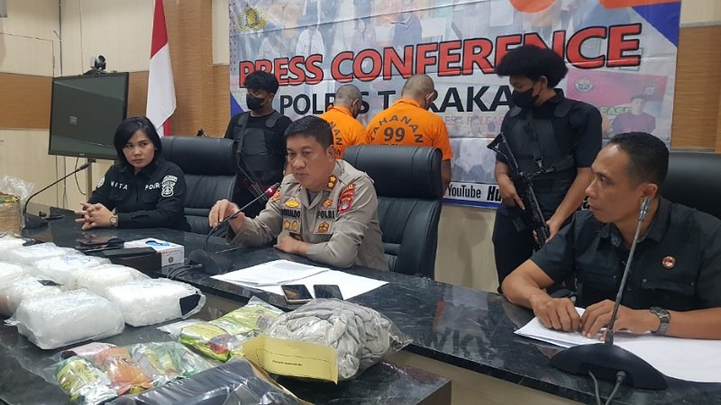Kapolres Tarakan AKBP Ronaldo Maradona rilis tangkapan sabu 9,9 Kg. Foto : Fokusborneo.com
