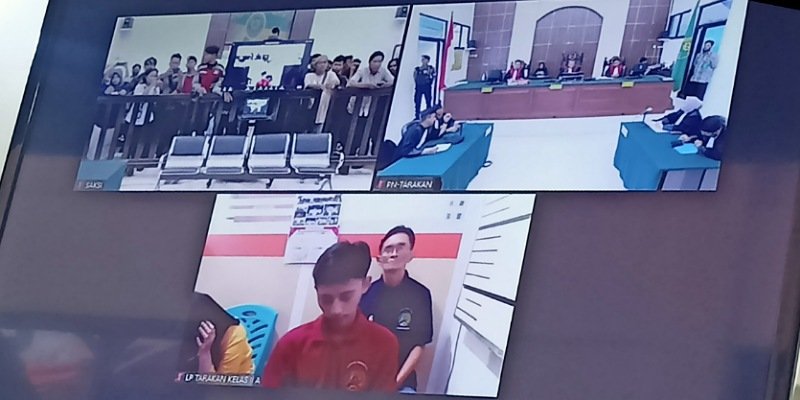 Dalam sidang ini, ketiga terdakwa dihadirkan melalui virtual online di Lapas Kelas II A Tarakan, sidang terbuka untuk umum.
