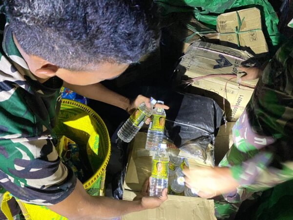 Satgas Pamtas Yonzipur 8/SMG kembali menunjukkan komitmennya dalam menjaga keamanan perbatasan dengan berhasil menggagalkan penyelundupan minuman keras (miras) ilegal di Pos Long Nawang yang terletak di Desa Betaoh, Kecamatan Kayan Hulu, yang berbatasan langsung dengan Malaysia.(Senin,14/10/2024)