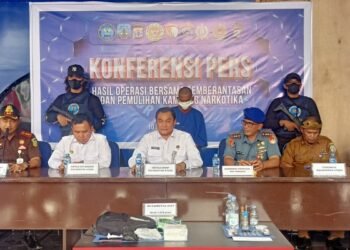 TARAKAN – Petugas gabungan melaksanakan operasi narkotika di Kota Tarakan, razia menyasar 2 titik Kelurahan yakni Kelurahan Selumit Pantai dan Juata Permai, Jumat (7/11/2025).