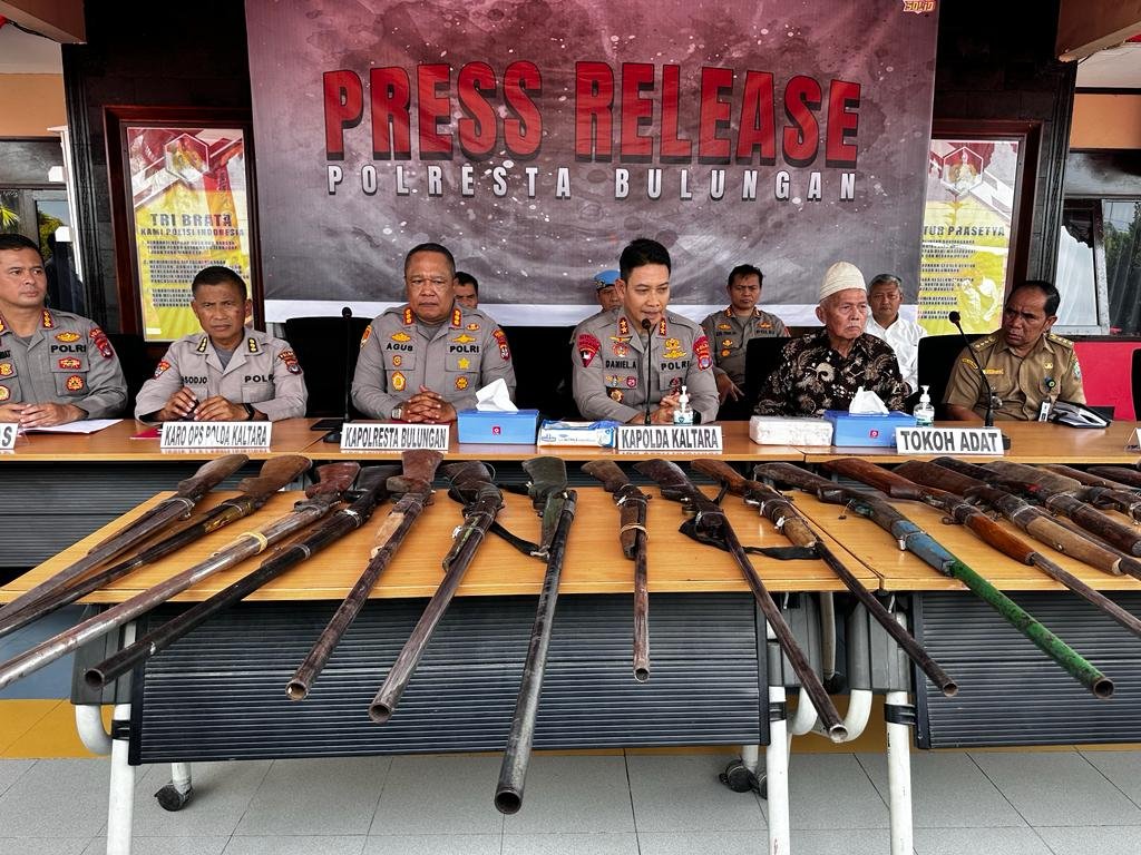 BULUNGAN – Bertempat di Mapolresta Bulungan Kapolda Kaltara menghadiri kegiatan Press Release Penyerahan Senjata Api Rakitan jenis Penabur dari Masyarakat kepada Kapolresta Bulungan sebagai upaya menjaga situasi Kamtibmas yang Kondusif, serta Dugaan tindak Pidana Pembunuhan atau Penganiayaan yang menyebabkan orang mati, dan atau dengan sengaja menyebabkan Kebakaran, Senin (31-07-2023).