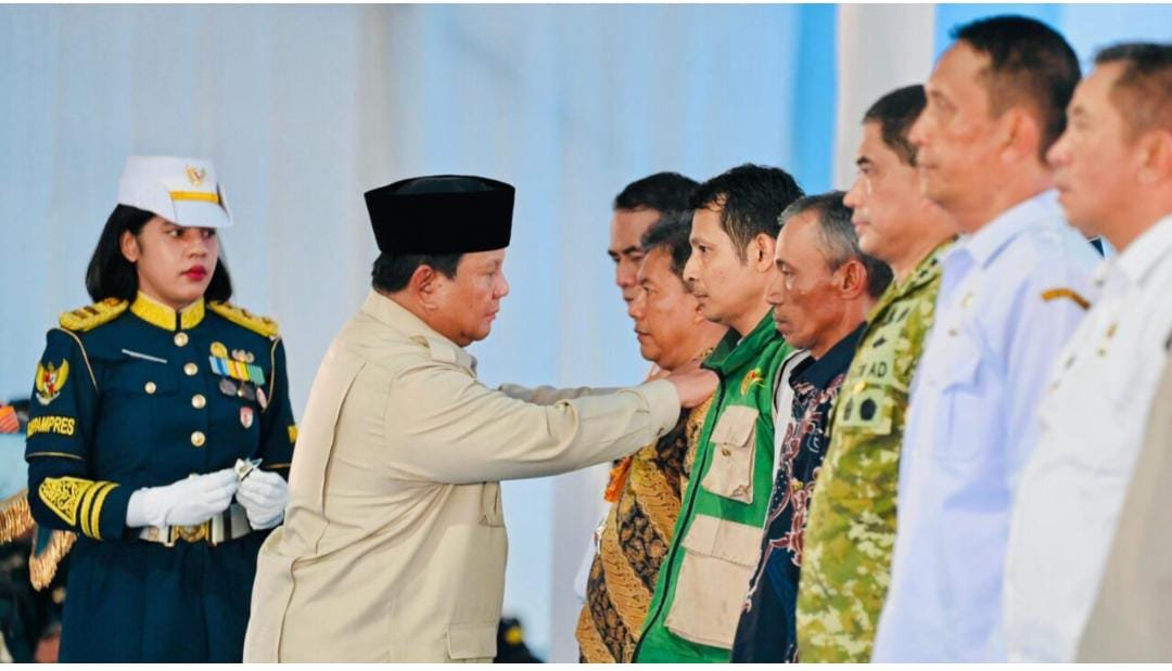 KARAWANG, Fokusborneo.com – Presiden Prabowo Subianto menganugerahkan Tanda Kehormatan Republik Indonesia kepada sejumlah tokoh dan pelaku di bidang pertanian dan pangan dalam acara Panen Raya dan Pengumuman Swasembada Pangan Nasional Tahun 2025 yang digelar di Desa Kertamukti, Kabupaten Karawang, Provinsi Jawa Barat, pada Rabu, 7 Januari 2026. Penganugerahan tersebut menjadi bagian dari rangkaian peringatan keberhasilan swasembada pangan nasional tahun 2025.