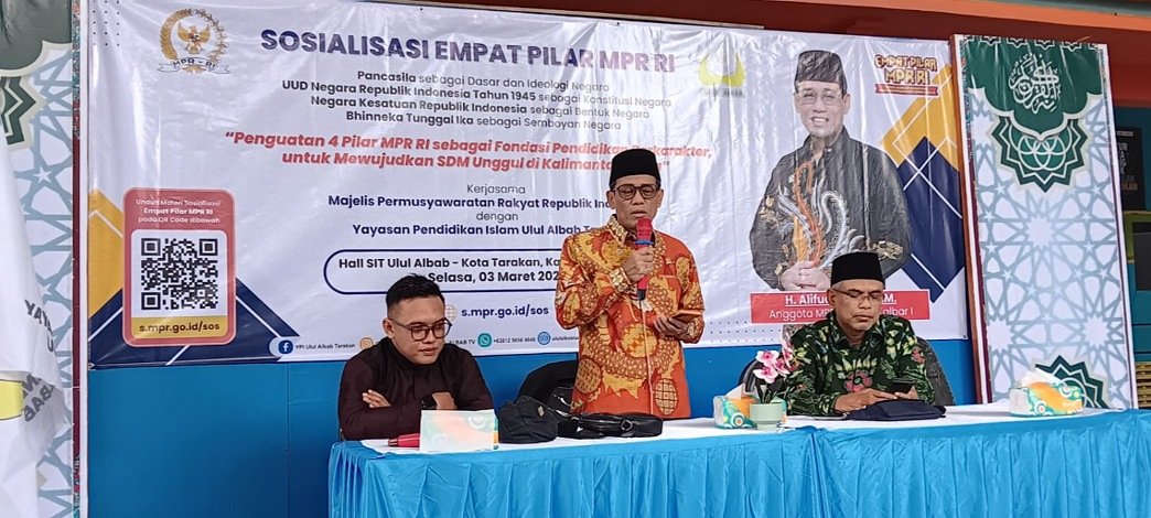 Pria yang akrab disapa Bang Alif ini menggelar Sosialisasi Empat Pilar Kebangsaan, di Ulul Albab Kota Tarakan, Selasa (3/3/26), menyasar segmen strategis yakni para guru, staf kependidikan, serta tokoh masyarakat setempat.