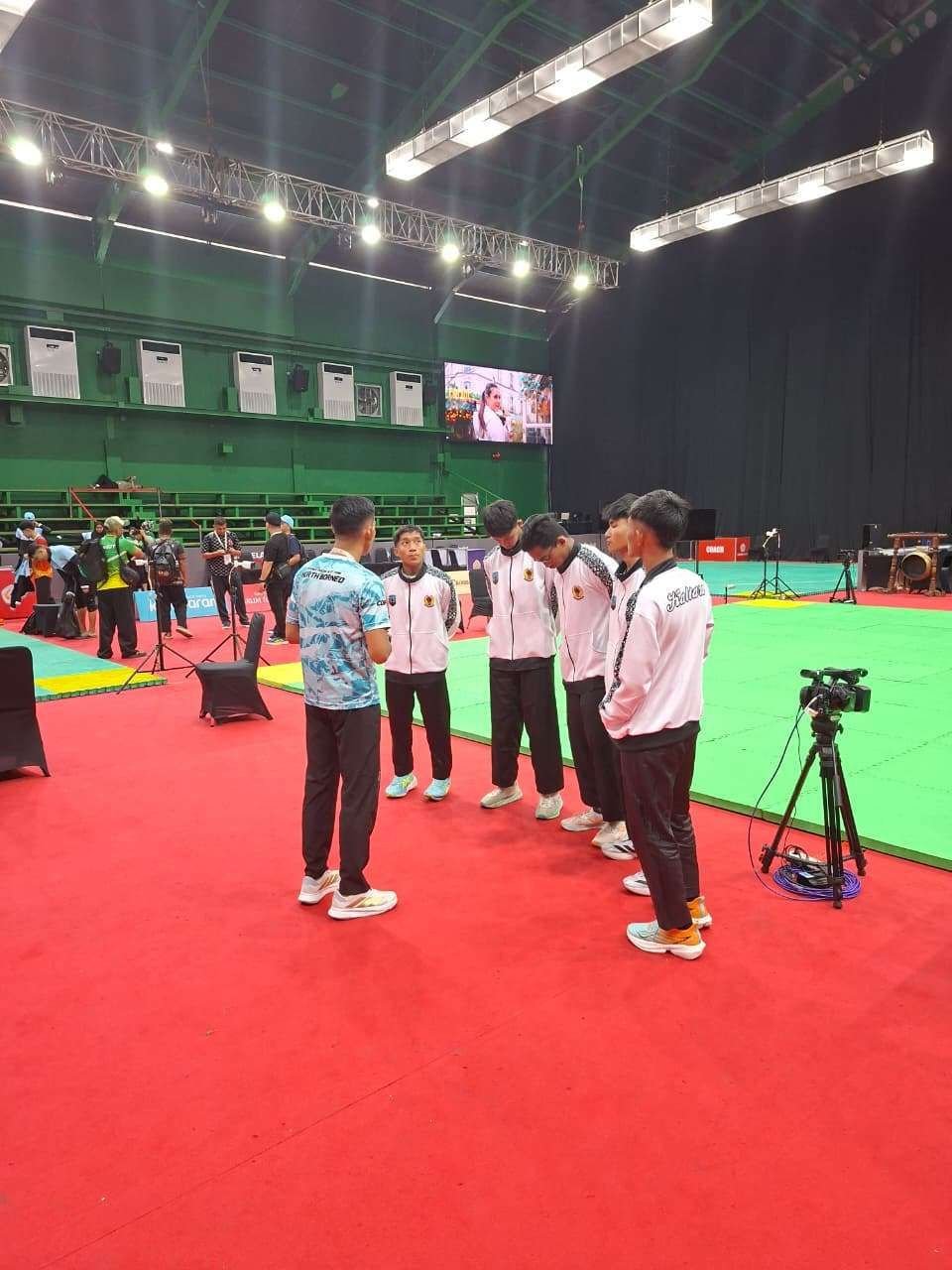 Pelatih Dony Ari Yuwono memantau kesiapan atlet sebelum bertanding, memastikan strategi dan teknik diterapkan dengan maksimal.