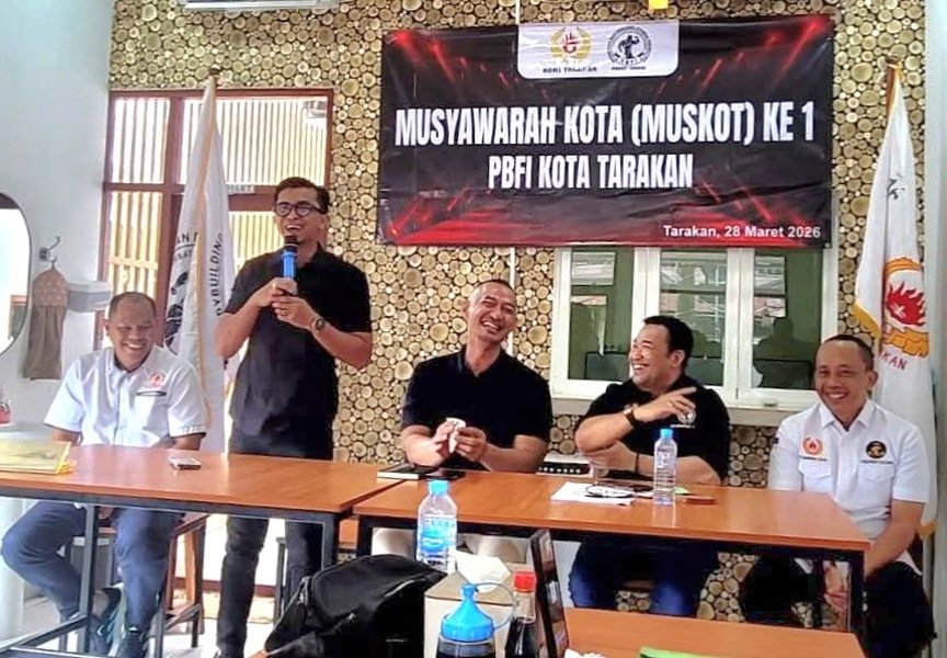 TARAKAN, Fokusborneo.com – Musyawarah Kota (Muskot) I Persatuan Binaraga Fitness Indonesia (PBFI) Kota Tarakan yang digelar di Café Celebess Tarakan, Sabtu (28/3/26), menjadi ajang konsolidasi organisasi sekaligus memperkuat komitmen dalam pengembangan olahraga binaraga.