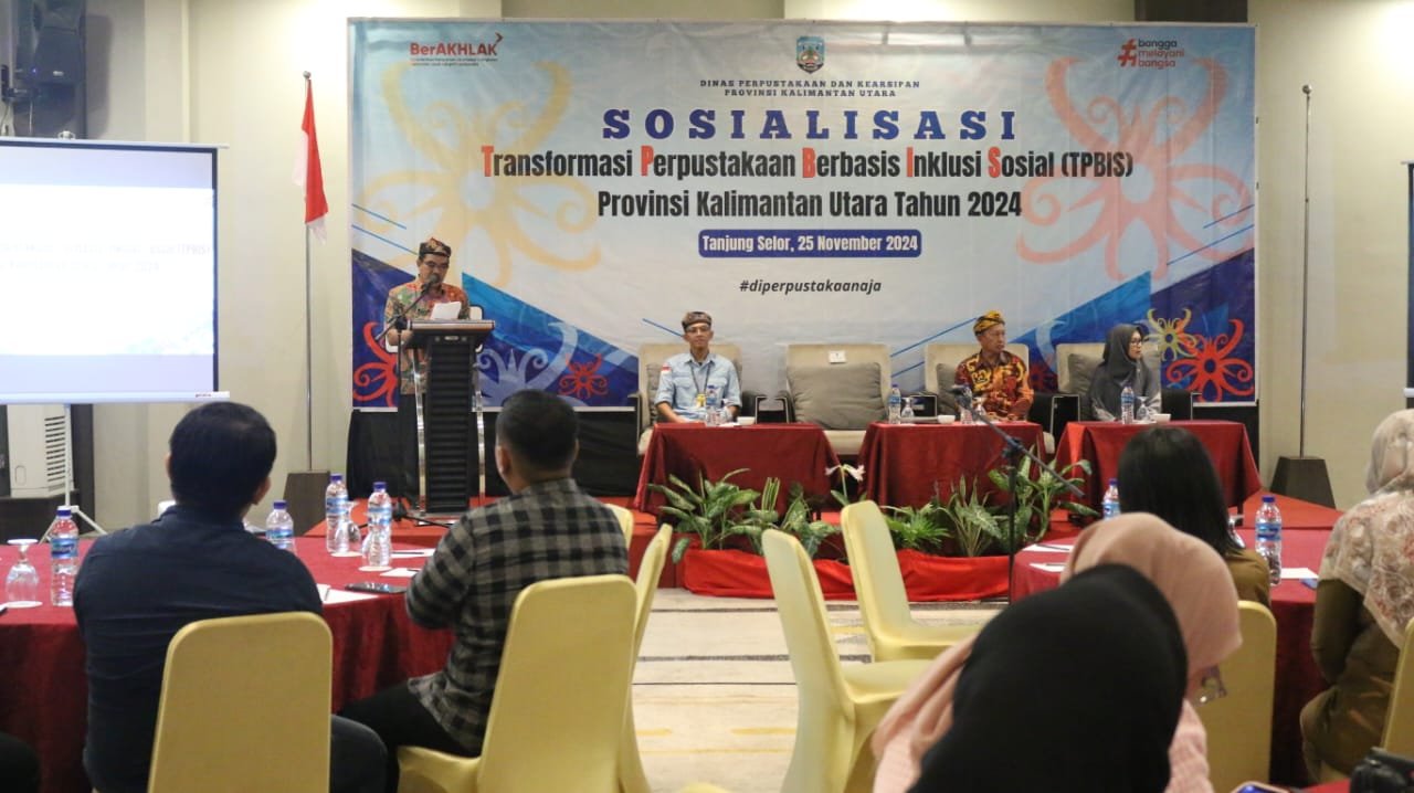 TANJUNG SELOR – Pemerintah Provinsi (Pemprov) Kalimantan Utara (Kaltara) melalui Dinas Perpustakaan dan Kearsipan Provinsi Kaltara selenggarakan kegiatan Sosialisasi Transformasi Perpustakaan Berbasis Inklusi Sosial (TPBIS) di Hotel Luminor pada senin (25/11) pagi.