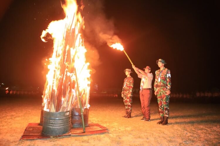 BALIKPAPAN, Fokusborneo.com – Kapoksahli Pangdam VI/Mulawarman Brigjen TNI Deni Sukwara, S.E., M.Si., M.Han., secara resmi menutup kegiatan Latihan Dasar Kepemimpinan Siswa (LDKS) SMP, SMA, dan SMK Kartika V-1 Balikpapan Tahun 2025 yang digelar di Lapangan Sudirman Balikpapan, Minggu (09/11/25) malam. Kegiatan penutupan berlangsung khidmat dengan penyalaan api unggun, pembacaan janji siswa, renungan malam, dan berbagai penampilan dari para peserta.