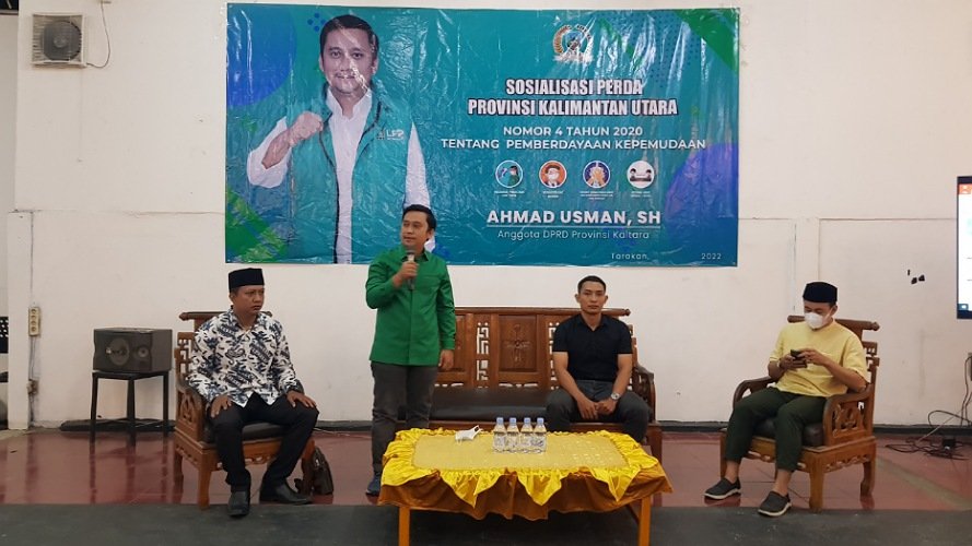 TARAKAN – Anggota DPRD Provinsi Kalimantan Utara (Kaltara) Ahmad Usman melakukan Sosialisasi Peraturan Daerah (Perda) Nomor 4 Tahun 2020 tentang Pemberdayaan Kepemudaan di Warung Ponles, Kota Tarakan, Selasa (13/12/22).