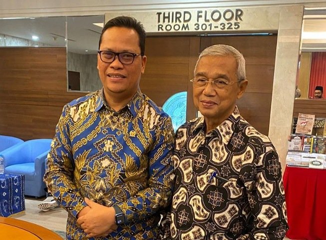 Calon anggota DPD RI sekaligus Ketua Komite 3 DPD RI Hasan Basri bersama Ketua PP Muhammadiyah Busyro Muqoddas. Foto : Ist