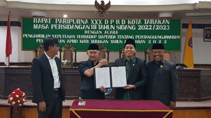 TARAKAN – DPRD Kota Tarakan menyetujui Rancangan Peraturan Daerah (Raperda) tentang Pertanggungjawaban Pelaksanaan Anggaran Pendapatan dan Belanja Daerah (APBD) Tahun Anggaran 2022 disahkan menjadi Peraturan Daerah (Perda).