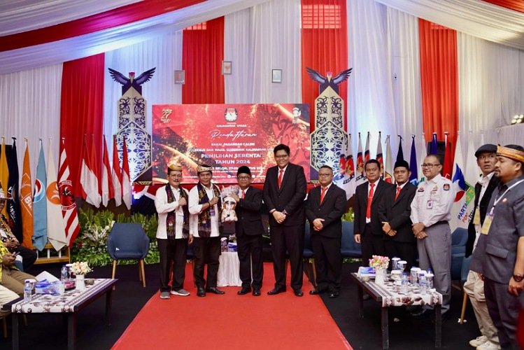 TANJUNG SELOR – Zainal Paliwang-Ingkong Ala menjadi pasangan terakhir yang mendaftar sebagai Calon Gubernur dan Wakil Gubernur Kalimantan Utara (Kaltara) ke Komisi Pemilihan Umum (KPU), Kamis (29/8/24). Pasangan dengan akronim ZIAP, mendaftar diantar 12 Partai Politik (Parpol) pengusung dan ribuan relawan.