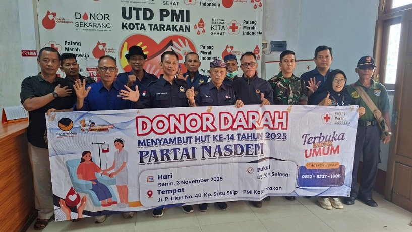 TARAKAN, Fokusborneo.com – Dewan Pimpinan Wilayah (DPW) Partai Nasional Demokrat (NasDem) Provinsi Kalimantan Utara (Kaltara) menunjukkan kepedulian sosialnya dengan menggelar aksi donor darah di Kantor Palang Merah Indonesia (PMI) Kota Tarakan, Senin (3/11/25).
