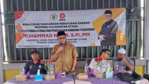 Anggota DPRD Provinsi Kaltara, Muhammad Nasir, turun langsung ke Kecamatan Sebatik Utara untuk menggelar sosialisasi Rancangan Peraturan Daerah (Raperda) tentang Pembangunan dan Pengelolaan Kawasan Perbatasan, Rabu (3/12/25).