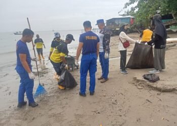 Satpolairud Polresta Balikpapan Pimpin Kerja Bakti Bersih Laut dan Pantai