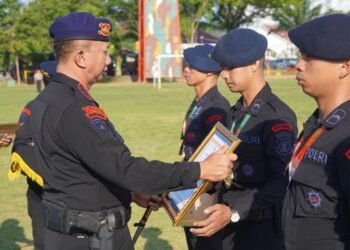 Brimob Polda Kaltim Gelar Upacara Kenaikan Pangkat Pengabdian dan Beri Penghargaan Atlet Berprestasi