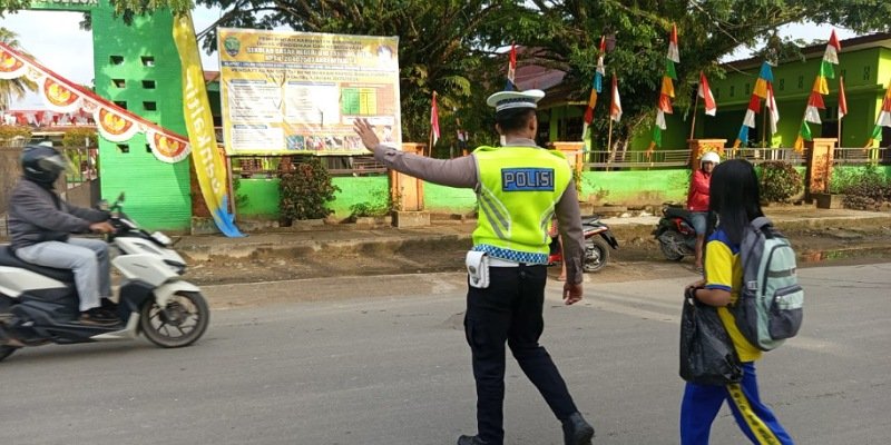 Sat Lantas Polresta Bulungan Laksanakan Strong Poin di Depan SDN 002 Tanjung Selor