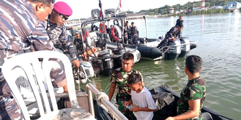 Prajurit Lantamal XIII Tolong Korban Jatuh ke Laut Saat PAM VVIP Presiden RI