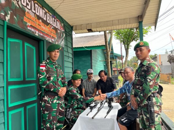 Warga Seimanggaris Serahkan Senpi Rakitan Sukarela ke Satgas Pamtas RI–MLY Yonarmed 11/GG Kostrad