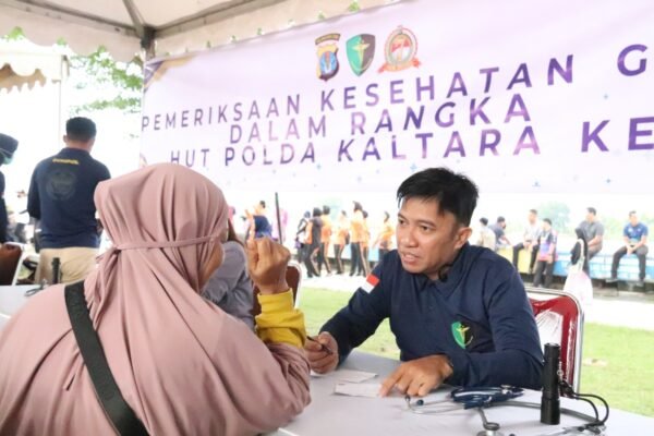 Pelayanan kesehatan gratis ini melibatkan berbagai tenaga medis dari Biddokkes Polda Kaltara, yang menyediakan layanan pemeriksaan kesehatan umum, cek tekanan darah, kadar gula darah, hingga konsultasi kesehatan.