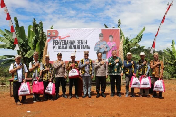 Malinau, 11 Januari 2025 – Kapolda Kalimantan Utara, Irjen Pol. Hary Sudwijanto, menunjukkan kepedulian terhadap masyarakat perbatasan dengan menyerahkan 800 bibit tanaman kepada tujuh kelompok tani di Desa Long Ampung, Kecamatan Kayan Selatan, Kabupaten Malinau. Jumat (10/1/2025) Kegiatan ini merupakan upaya mendukung ketahanan pangan di wilayah terpencil yang berbatasan langsung dengan Sarawak, Malaysia.
