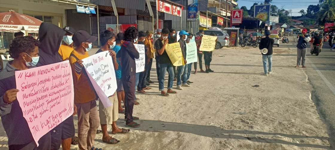 Dalam aksi tersebut, masyarakat juga membawa spanduk bertuliskan dukungan kepada TNI khususnya Rancangan Undang – Undang TNI (RUU TNI) yang saat ini sedang ramai di Indonesia.