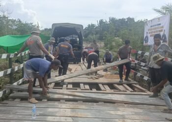Tindak Lanjuti Arahan Presiden Prabowo, Satbrimob Polda Kaltim Perbaiki Jembatan di Pelosok