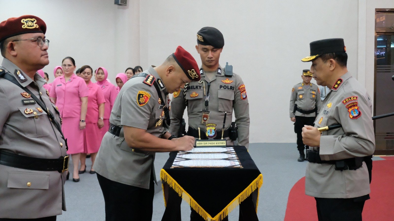 Tanjung Selor –  Kapolda Kaltara, Irjen Pol. Hary Sudwijanto, S.I.K., M.Si., memimpin upacara serah terima jabatan (sertijab) Dirreskrimsus Polda Kaltara, yang dihadiri oleh para pejabat utama Polda, Ketua Bhayangkari Daerah Kaltara serta Personel lainnya, bertempat di ruang Rupatama Kayan, Rabu (28/5/25).