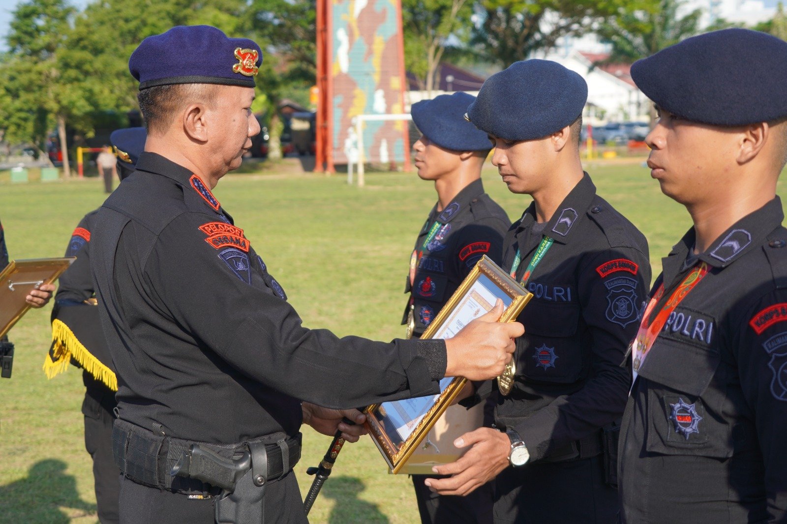 Acara tersebut dipimpin langsung oleh Komandan Satuan Brimob Polda Kaltim, Kombes Pol. Andy Rifai, S.I.K., M.H., dan dihadiri oleh jajaran pejabat utama serta anggota Satbrimob Polda Kaltim.