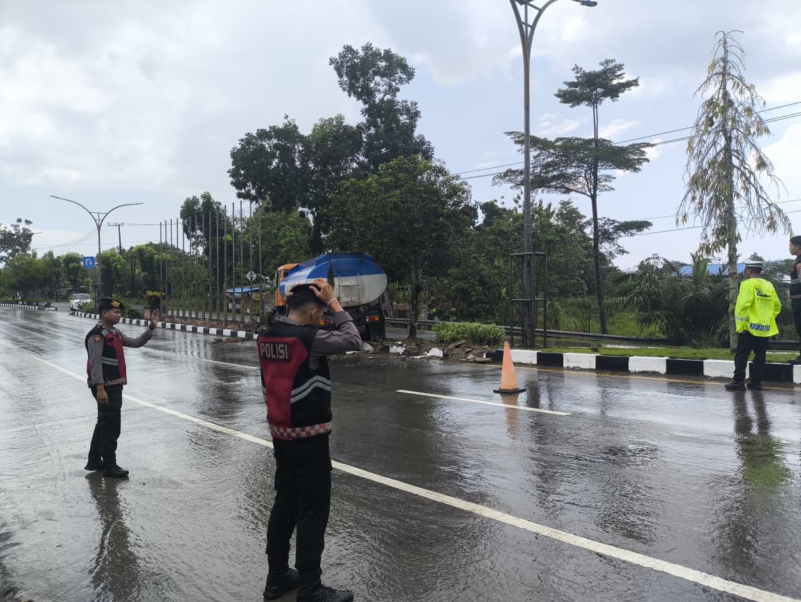 Personel juga mengamankan lalu lintas di lokasi agar tetap lancar dan aman. Situasi dalam keadaan aman.