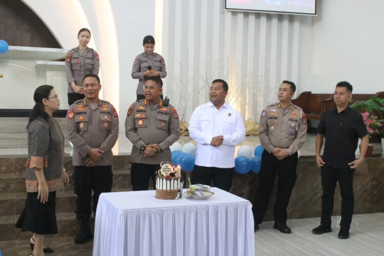 TANJUNGSELOR, Fokusborneo.com — Kepolisian Daerah Kalimantan Utara (Polda Kaltara) kembali menggelar kegiatan rutin Pembinaan Rohani dan Mental (Binrohtal) setiap Kamis pagi usai apel. Namun, kegiatan kali ini terasa istimewa bagi personel yang beragama Nasrani, karena bertepatan dengan perayaan Hari Ulang Tahun (HUT) ke-2 Gereja Oikumene Hosana Polda Kaltara.