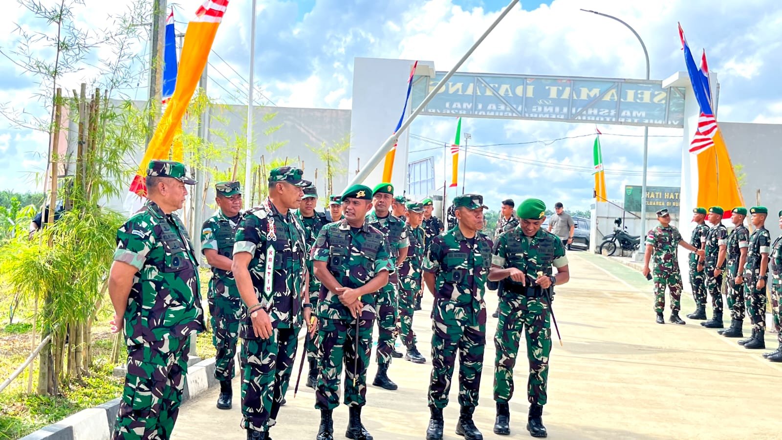 Dankodiklatad yang didampingi Danbrigif TP 85/BTC, Kolonel Inf Alzaki, S.E., M.M., M.B.A., M.M.A.S., disambut hangat oleh Danyonif TP 826/BTB, Letkol Inf Sulaiman, beserta para perwira staf dan prajurit.