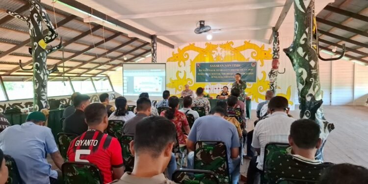 TANA TIDUNG – Dalam rangkaian kegiatan TNI Manunggal Membangun Desa (TMMD) ke-126 Tahun Anggaran 2025, Kodim 0914/Tana Tidung melalui Satgas TMMD melaksanakan kegiatan sosialisasi dan penyuluhan program pemerintah pada hari Kamis, 23 Oktober 2025, pukul 09.20 Wita, bertempat di Rumah Adat Desa Limbu Sedulun, Kecamatan Sesayap, Kabupaten Tana Tidung.