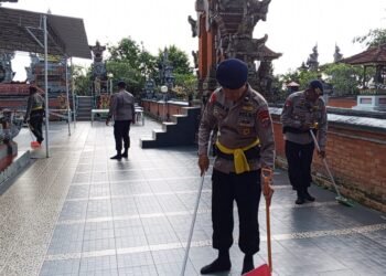Brimob Kaltim Bersihkan Pura Giri Jaya Natha, Wujud Nyata Kepedulian dan Toleransi Antarumat Beragama