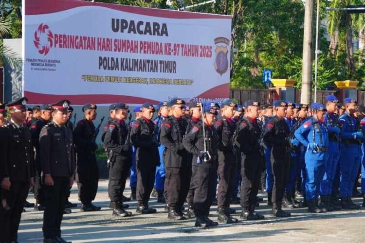 BALIKPAPAN, Fokusborneo.com —Jajaran Polda Kalimantan Timur (Kaltim) memperingati Hari Sumpah Pemuda ke-97 Tahun 2025 dengan menggelar upacara khidmat di Mapolresta Balikpapan, Jalan Jenderal Sudirman No. 58, pada Selasa (28/10/2025). Upacara penting ini dihadiri oleh Komandan Satuan (Dansat) Brimob Polda Kaltim, Kombes Pol. Andy Rifai, S.I.K., M.H., bersama seluruh pejabat utama dan personel lainnya, menegaskan komitmen Polri dalam meneladani semangat persatuan pemuda.
