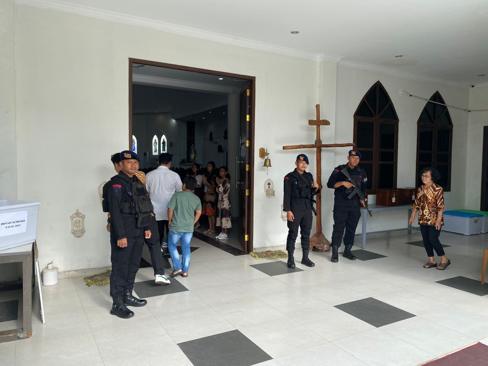 “Patroli sambang gereja ini kami lakukan untuk memastikan tidak adanya potensi gangguan keamanan serta memberikan rasa aman kepada saudara-saudara kita yang melaksanakan ibadah. Kehadiran Brimob di tengah masyarakat merupakan wujud pengabdian kami untuk menjaga keamanan dan ketertiban,” ujar Kompol Edy Musdwiyono.