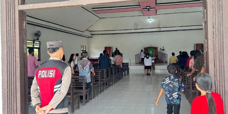 Selain patroli dialogis, personel juga melaksanakan pengamanan tempat ibadah Minggu di berbagai gereja guna memastikan umat dapat beribadah dengan aman dan nyaman.