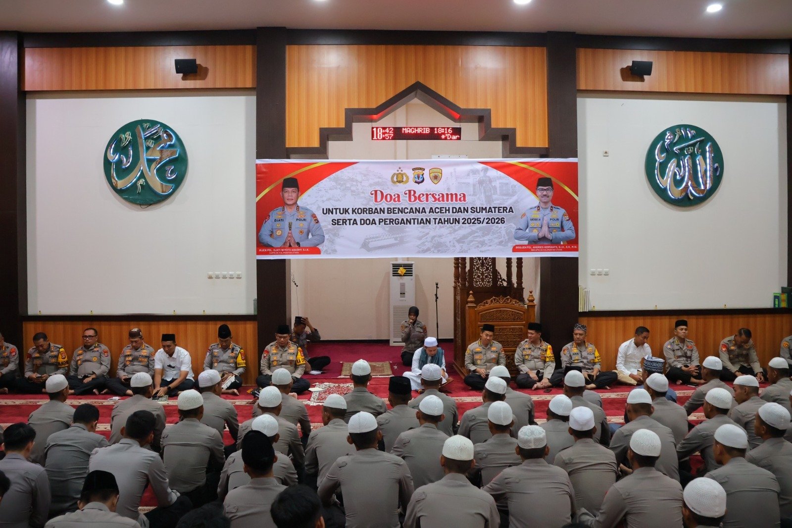 Kapolda juga mengajak seluruh jamaah untuk mendoakan masyarakat di Sumatera yang tengah terdampak bencana alam. Ia berharap para korban diberikan ketabahan, keselamatan, serta kekuatan dalam menghadapi cobaan, dan situasi segera pulih. “Semoga Allah SWT senantiasa melindungi bangsa dan negara kita dari segala marabahaya,” tambahnya.