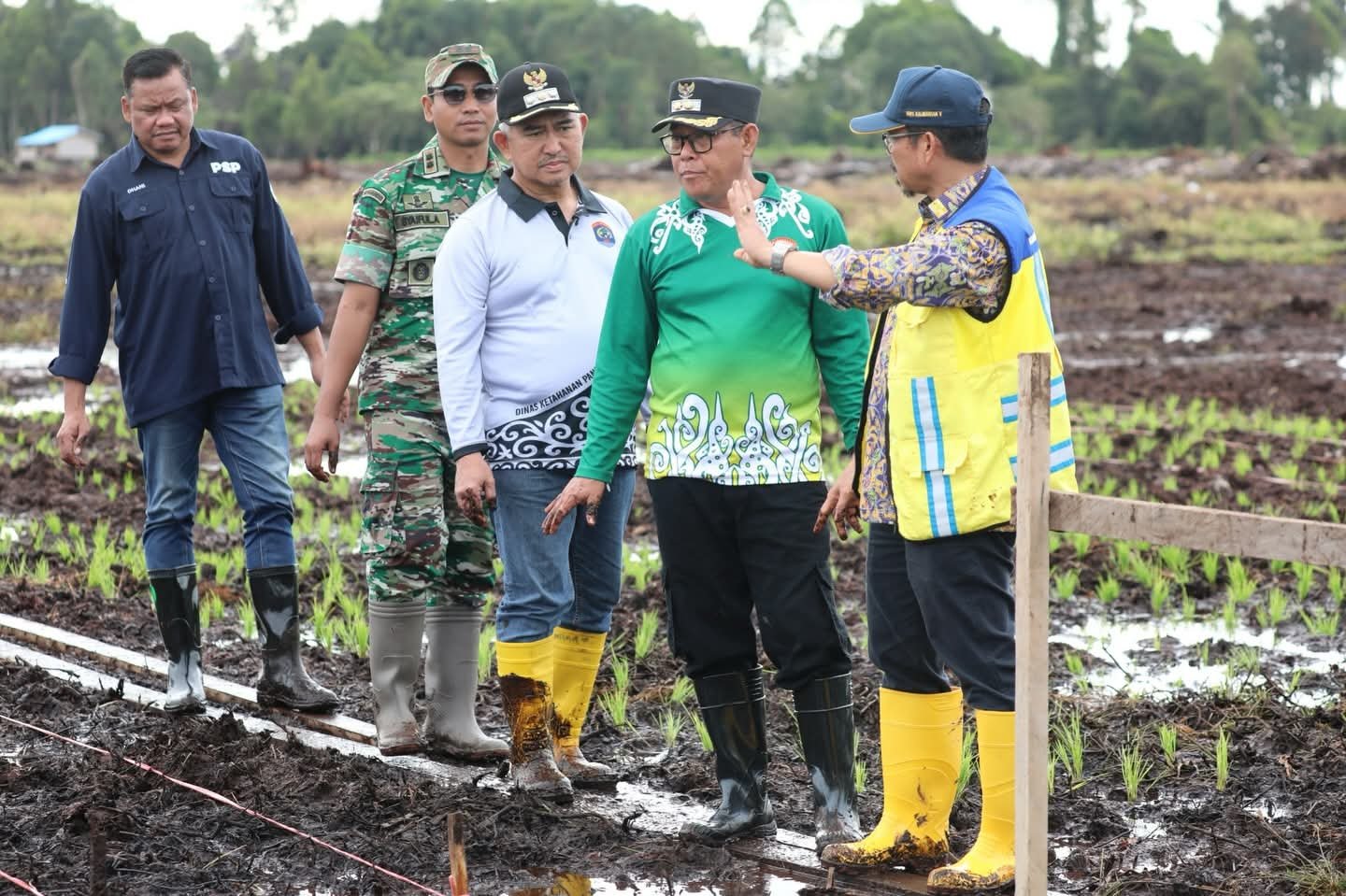 Kegiatan tanam padi perdana dihadiri Wali Kota Tarakan dr. H. Khairul, M.Kes., bersama Dandim 0907/Tarakan Letkol Inf Syaiful Arif, S.Sos., M.Han., unsur Forkopimda Kota Tarakan, perwakilan Dinas Pertanian, kelompok tani, serta masyarakat setempat.