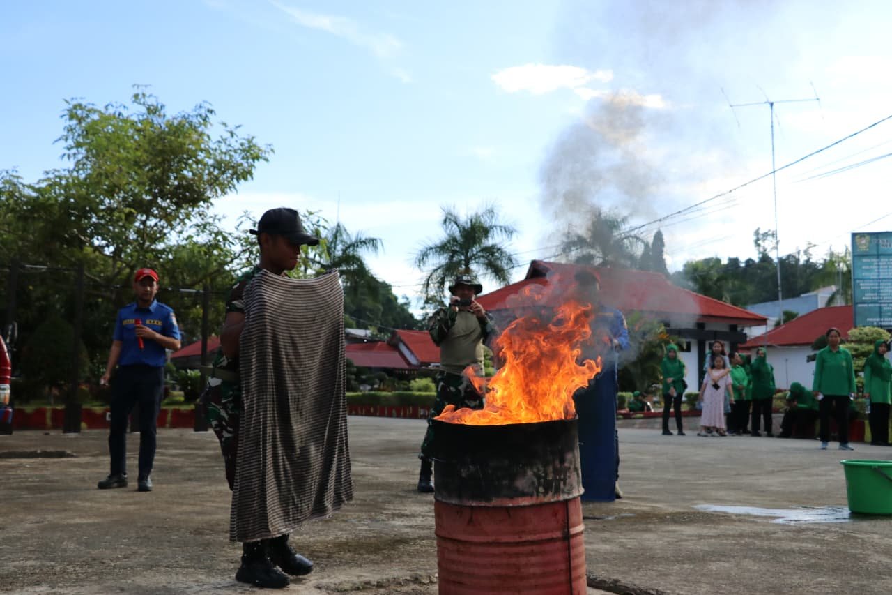 Tidak hanya mendapatkan teori, para prajurit dan ibu-ibu Persit juga berkesempatan melakukan praktik langsung di lapangan. Ada beberapa simulasi yang dilakukan diantaranya Penanganan kebocoran tabung LPG, pemadaman api tradisional menggunakan selimut basah serta prosedur penggunaan APAR yang benar sesuai dengan jenis api yang dihadapi.