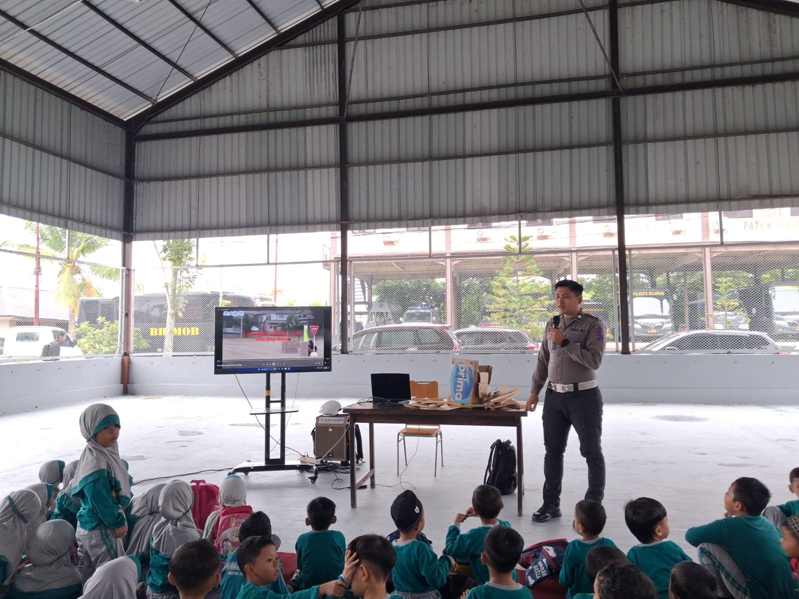 Dalam kunjungan tersebut, para personel Sat Lantas memberikan materi edukasi yang dikemas dengan cara menyenangkan, mulai dari pengenalan rambu-rambu lalu lintas hingga tata cara menyeberang jalan yang aman.