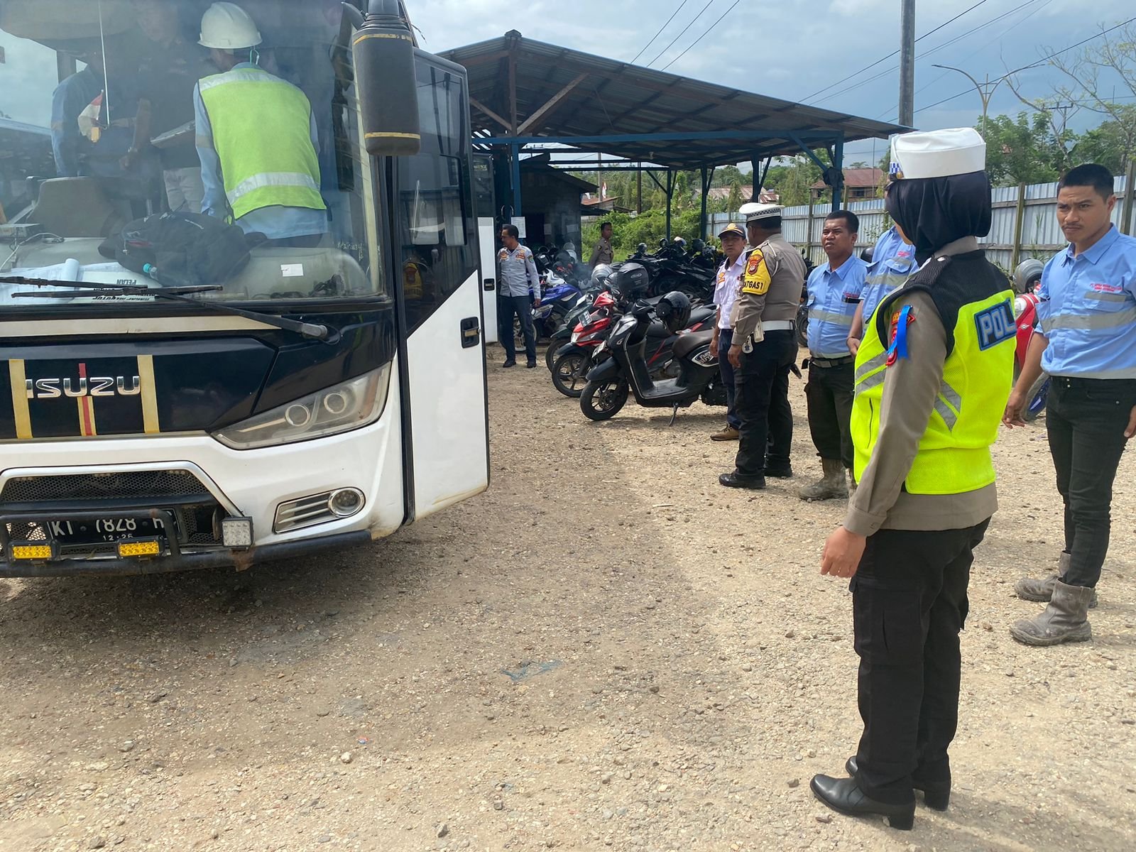 Satlantas Polresta Bulungan Laksanakan Ramp Check Armada Bus PT. MIL dalam Ops Keselamatan Kayan 2026