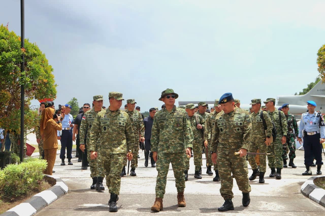Kunjungan kerja yang dimulai dari Lanud Anang Busra ini fokus pada inspeksi langsung lahan yang diproyeksikan menjadi area Latihan Gabungan (Latgab) TNI dalam waktu dekat.