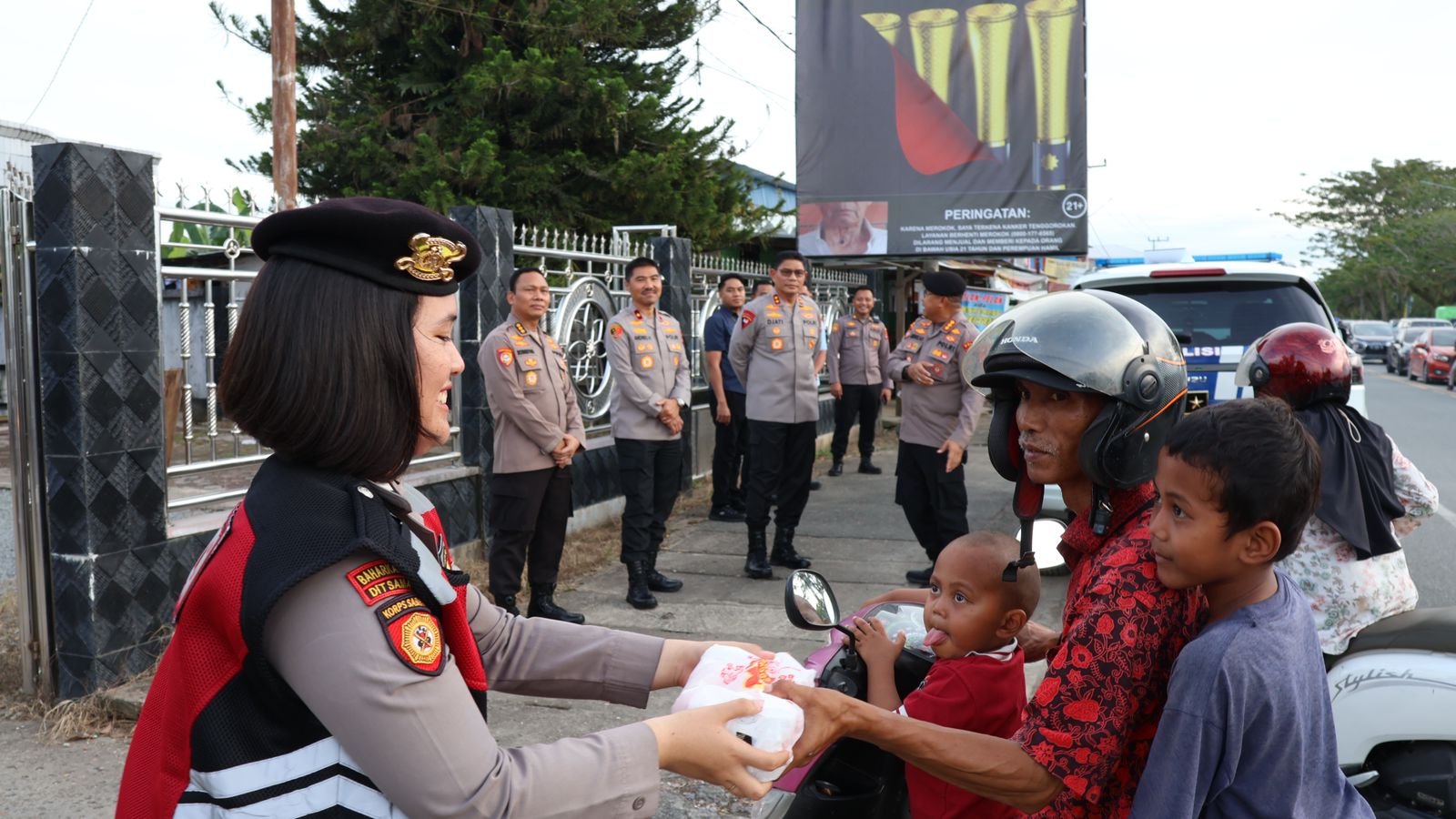Pembagian takjil menyasar masyarakat yang masih dalam perjalanan menjelang berbuka puasa. Kegiatan ini menjadi wujud nyata kehadiran Polri di tengah masyarakat, tidak hanya dalam tugas penegakan hukum, tetapi juga melalui aksi sosial dan kemanusiaan.